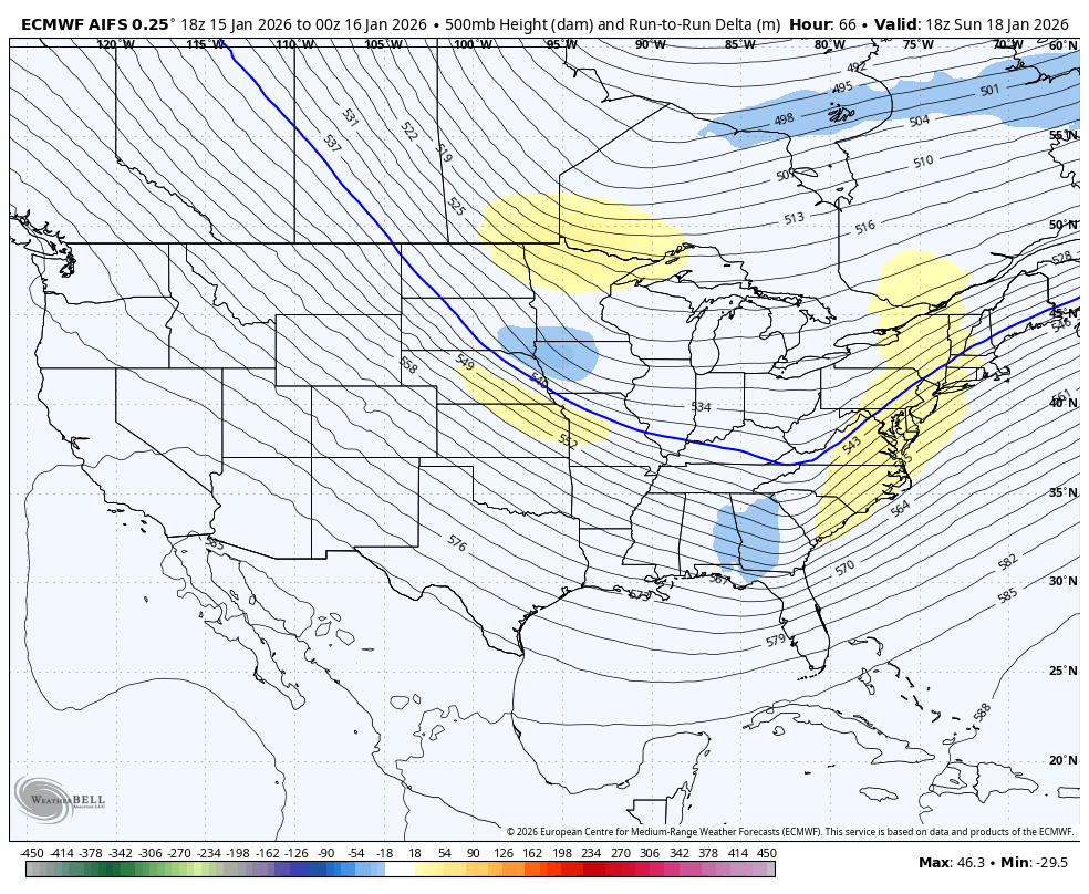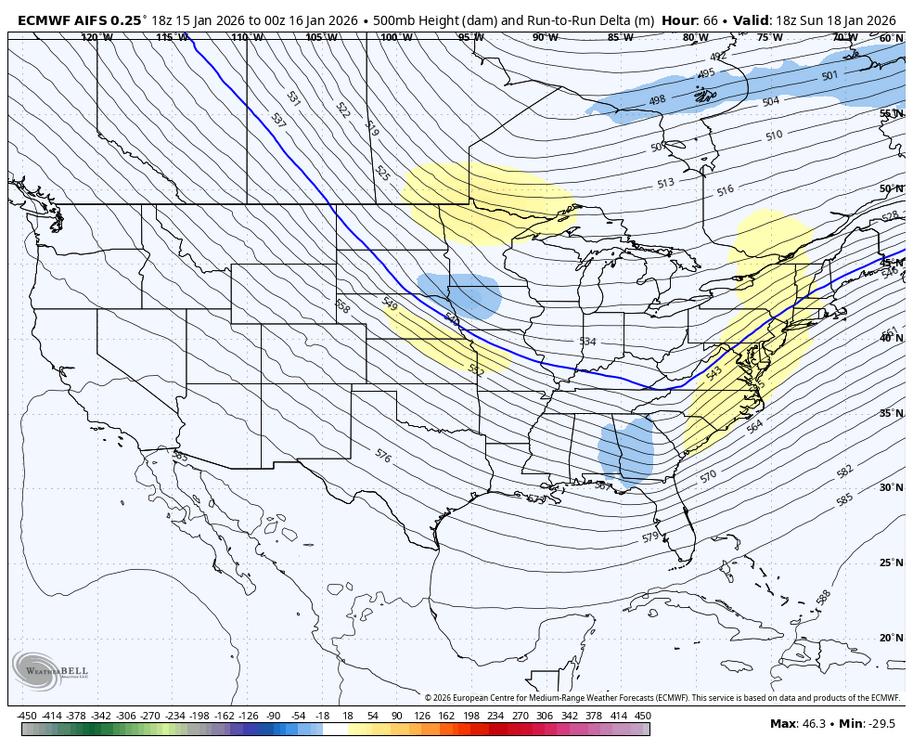 A theory to explain the AI vs GFS/ECMWF battle could be the latent heat release - wave development feedback loop that Eric Webb mentioned a day or two ago. Shortwaves that tap Gulf moisture are susceptible to this effect. If this is biasing the global models too flat aloft, it could explain why the AIs are further west since they can bias-correct based on historical outcomes. -