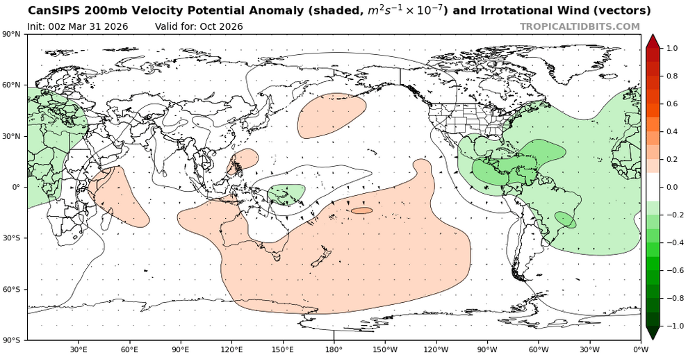 CANSIPs shows lingering nina-like convection in the maritime continent, while the CFS shows a classic nino response that slowly propagates eastward into winter. -