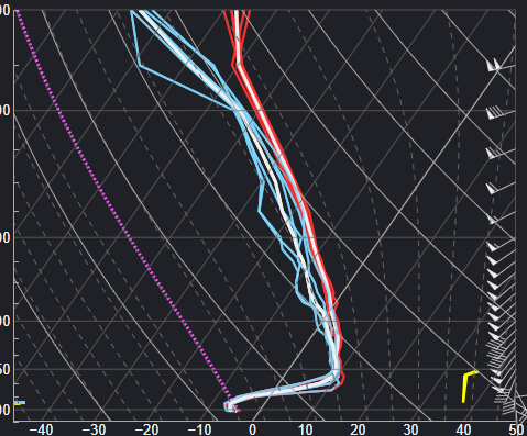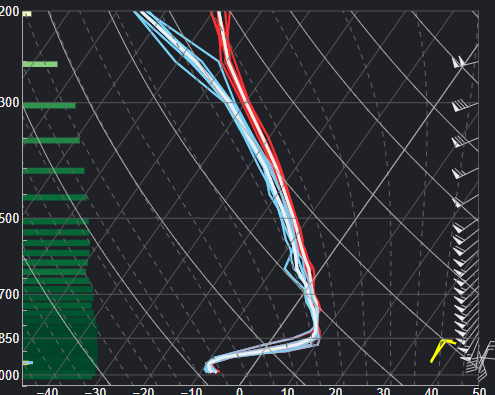 So I'm taking a look at the NAM soundings for at Sunday 9z (when the sleet line crosses into our area) and based on my untrained eye, it seems REALLY close. No wonder the models are struggling with the mid-level thermals. -