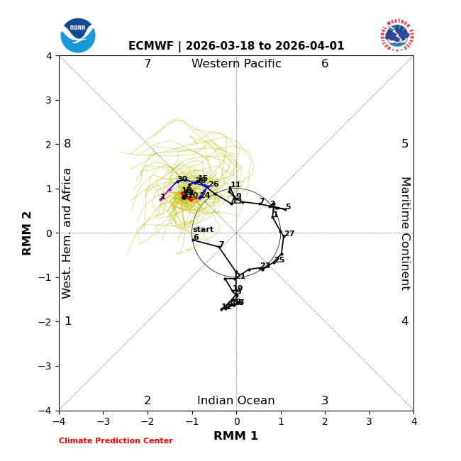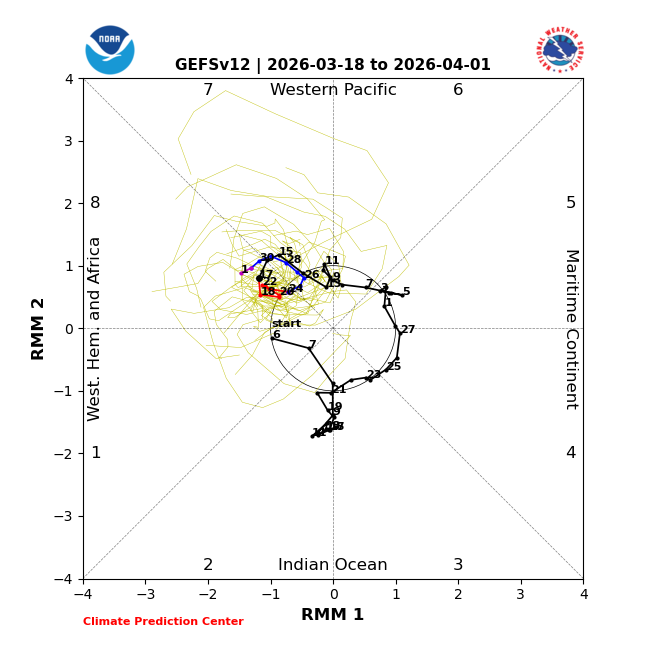 Today’s MJO forecasts still are all in phases 7 and 8, the coldest March on average following La Niña winters: