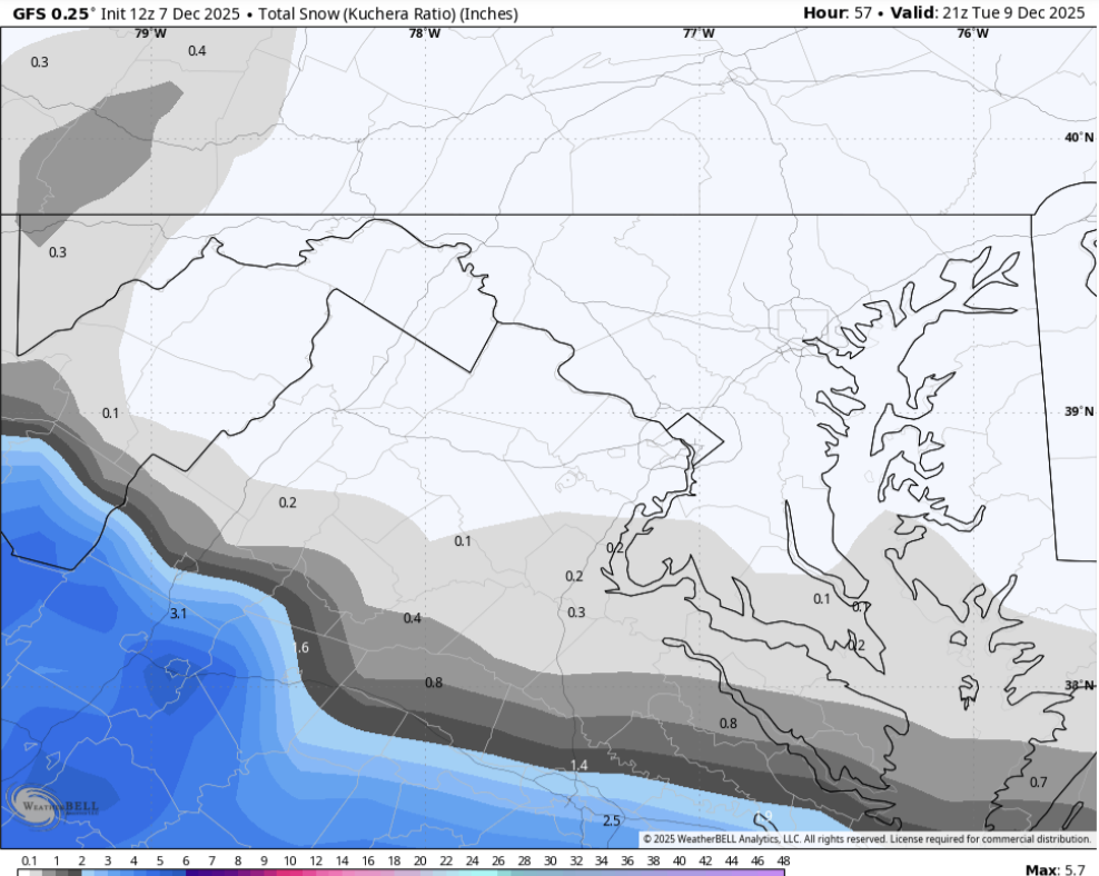 Current longer range guidance differs significantly as to what the pattern does just beyond mid-month. ECAI wants nothing to do with any kind of a notable moderation in temperatures. It keeps the cold locked and loaded through Christmas. Other guidance relaxes the cold but nothing suggests any kind of a Christmas torch this year. We'll see. Modeled forecasts of warm ups have been either wrong or muted for the most part since back in October. Snowfall prospects much more uncertain but I'd favor persistence and lean toward possible light clipper / frontal passage events. Don't see any solid evidence at this point in the longer range of anything major 4-8"+. In general I'd favor overall below normal precipitation for the next 7-10 days. Colder and generally dry pattern looks to dominate.