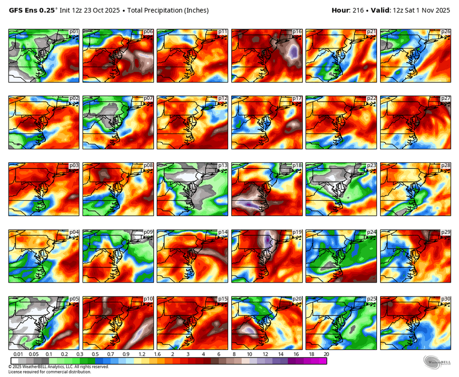 Good afternoon everyone, Self - caution. Use your own interp. Some time before any thread on a possible (in my mind probable) 1-3" rain event with a brief period of power outage fully leafed tree power outages on the coast and even isolated slight R# eddy transfer 40-45 MPH gusts inland beneath the potential 850 MB se 60 kt jet on the 30th. That rainfall if it occurs (it can still end up less than 1" for us with the bigger heavy rain in New England), will bring most if not all OKX climate sites close to normal monthly totals. So... another cycle or two of ensembles before committing. ECAI hopefully is on the right track as its been steadiest. Of interest is the 06z ECAI distant Melissa 850mb inflow feed but outlier long shot at this point. FOLLOW NHC. I plan to start the November thread sometime this weekend after a look see on how fast this Canadian block breaks down week two or beyond. A period of wet snow or snow shower-rain showers seems to be in the offing (suggestion via modeled by some ensembles) for I84 high terrain sometime the first 7 to 10 days of November due to the repeated digging of Canadian short waves. Waiting til the weekend to start November.