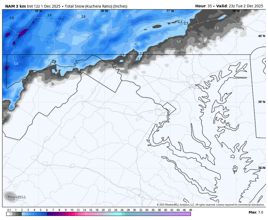 Same thoughts I have. I'm not confident I'll reach 2" but .5"-2" seems reasonable. The last minute north trend on models has begun, at least on some modeling. -