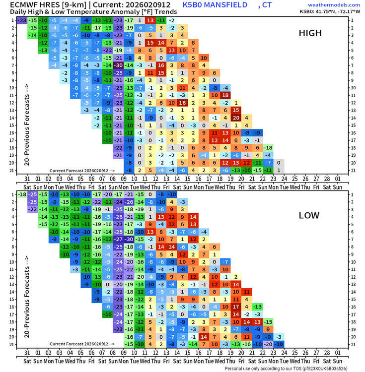 Multi-day mid-month blowtorch on tonight's GFS. It's not good to get that kind of stuff in February, so I hope it is overdoing the warmth. -