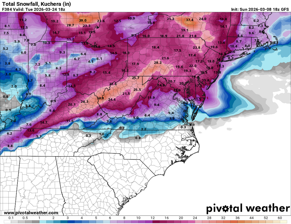They 18z GFS is an impressive snow storm for middle and western areas around 210. It will almost assuredly change, but it is an example of what some of us have been watching. It looks like 2-3 strong amplifications beginning around St Patrick's Day.- 22 replies
