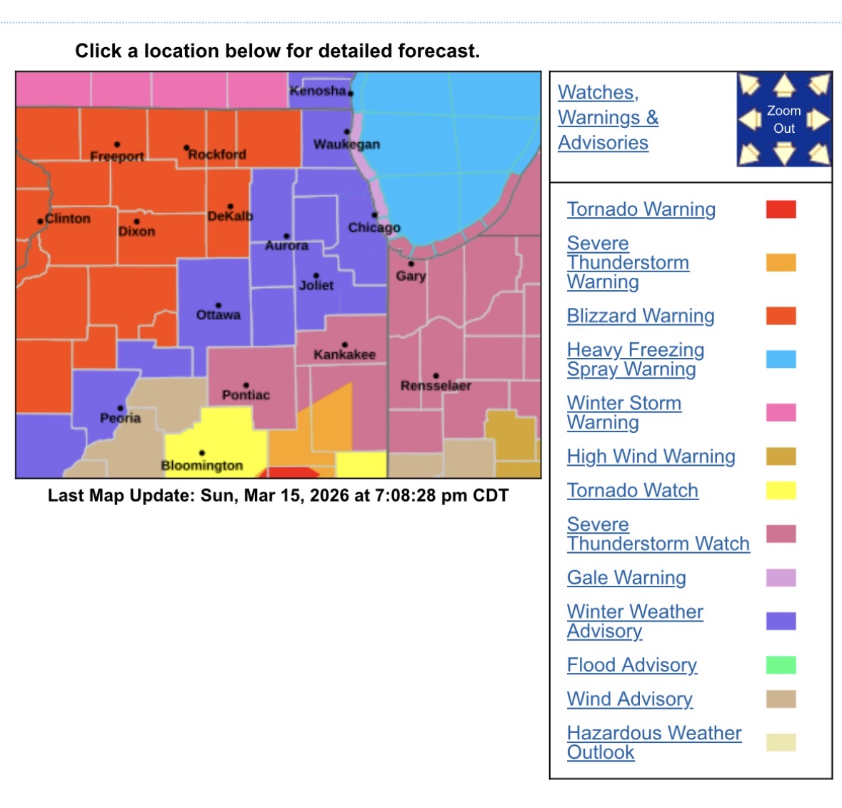 Extreme Heat Warning, Blizzard Warning, Tornado Warning, Severe Thunderstorm Warning, Winter Storm Warning, High Wind Warning, Flood Warning, Ice Storm Warning, Freeze Warning, Gale Warning, Red Flag Warning, Storm Warning (purple in the western Gulf), Lake Shore Flood Warning, Special Marine Warning, Heavy Freezing Spray Warning all in effect in the U.S currently. Maybe the wildest weather night ever. I think the only weather warnings that aren't currently active are Tropical Storm, Hurricane, Extreme Cold, Coastal Flood, and a Flash Flood.