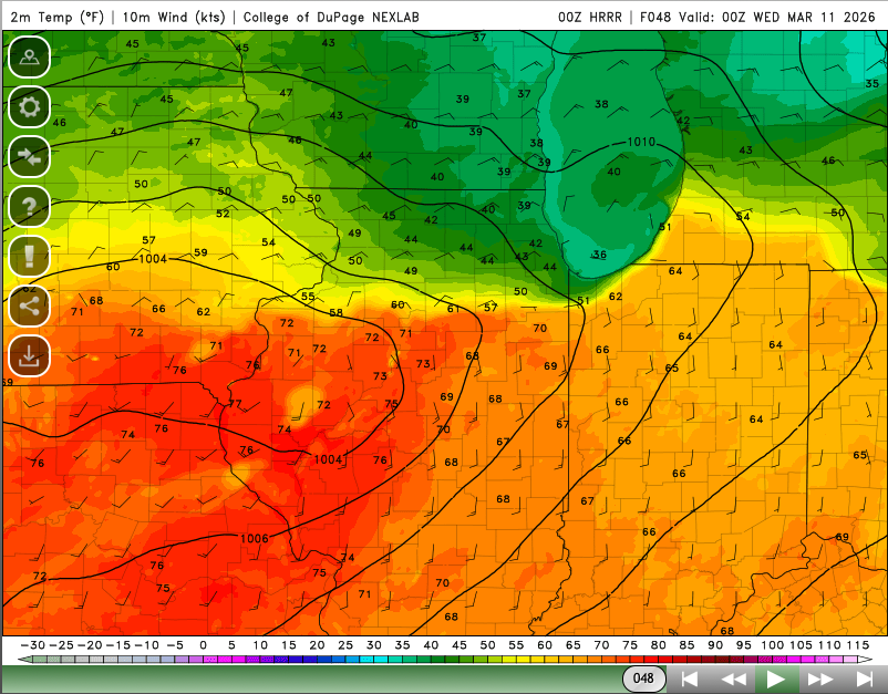 How much further north will the warm front nudge? Still about 36-48 hours to see but looking like our first crack at some true severe for Central and N IL. Also storm initiation a slight question with the latest 00z models, specifically NAM3km.