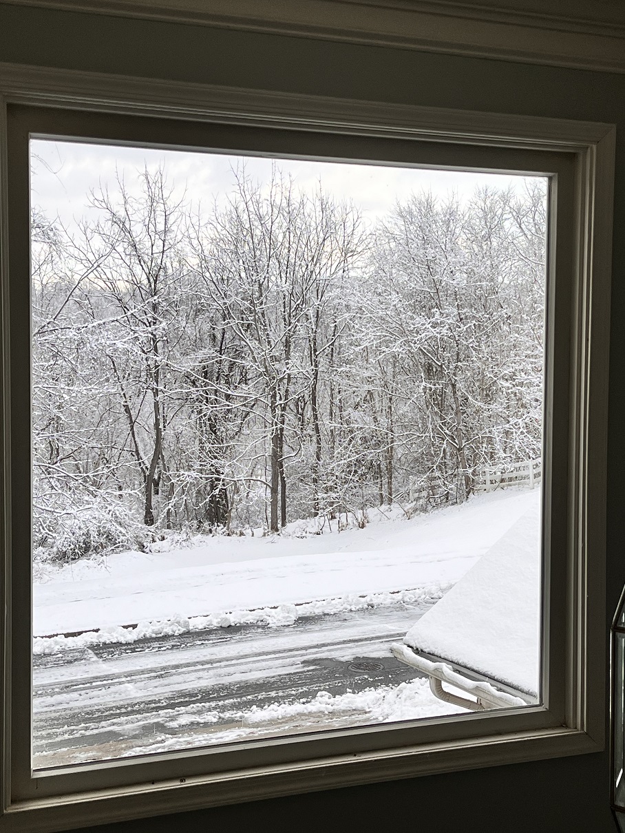 Another snow squall blowing through here with sideways snow. Pavement covered quickly. 19°.
