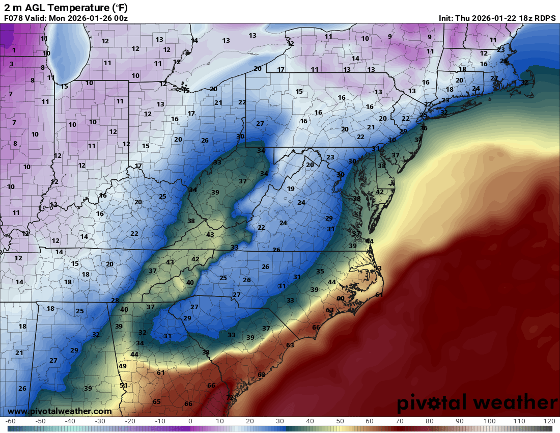 as depicted here this would be heavy sleet/frz rain, this would really do a number on the roads to finish off the storm. As others have alluded to would be really nice to trend this whole coastal south 50-100 miles and have this be powder. -