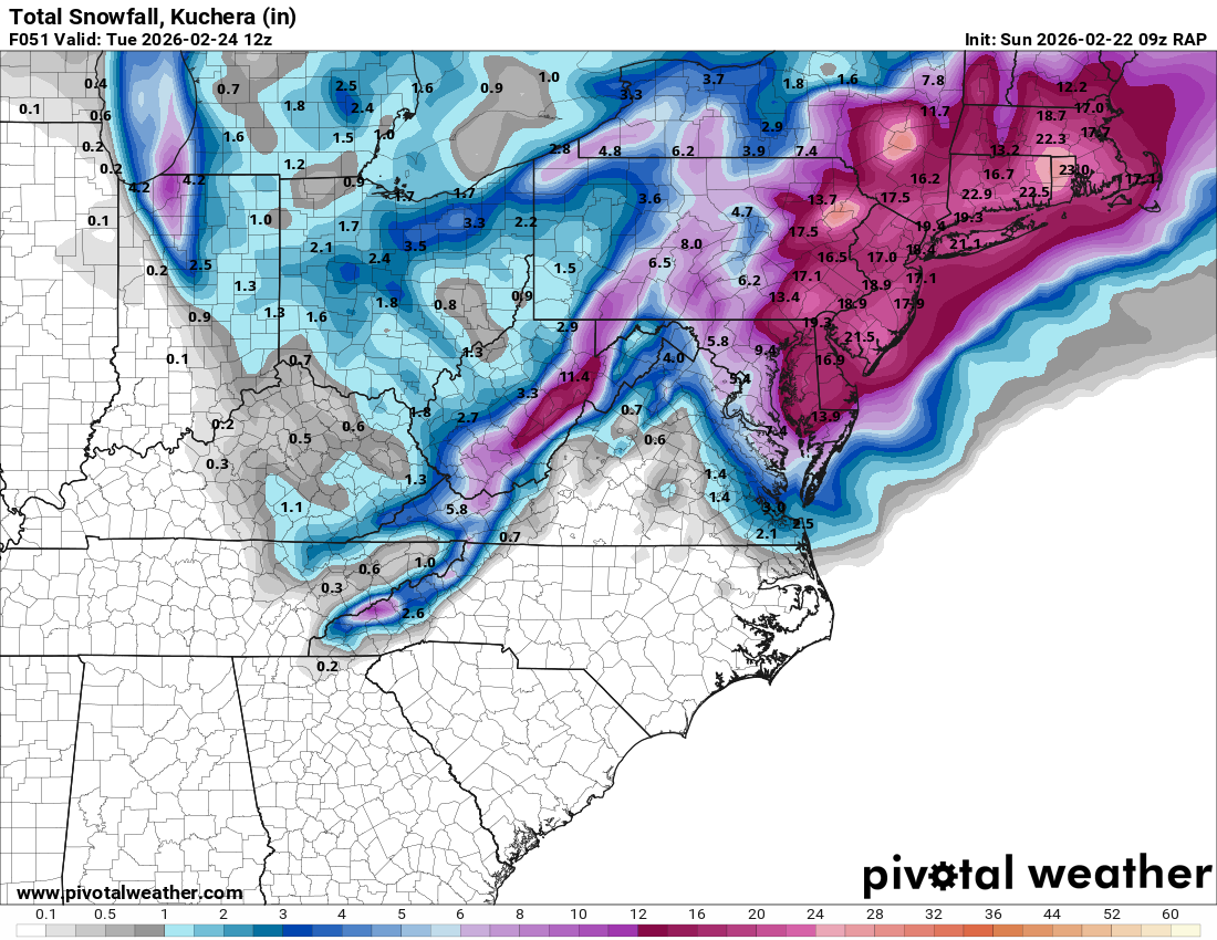 19” looks just fine to me. Hopefully the sharp cut off is overdone for our north and west friends
