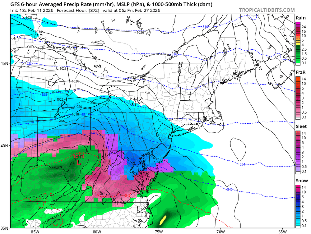 It was pretty clear this was never coming. The setup was a thread the needle act given the rossby wave configuration, widespread synoptic support was never there for such a coup. Models provided a little excitement but the ensembles stood pretty firm. Next! Potential blocky gradient look at the end of next week. Playing with fire a bit but I'll take it for now -