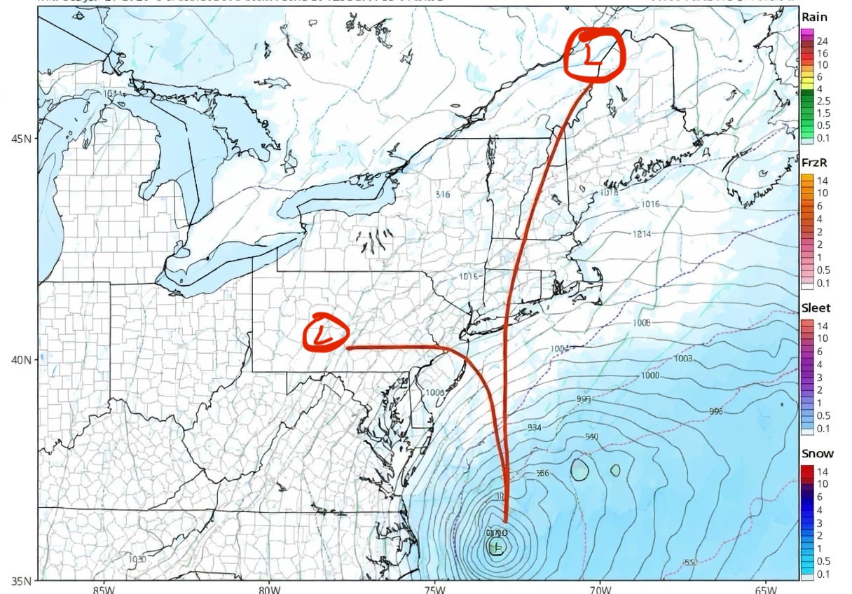Possible coastal storm centered on Feb 1 2026.