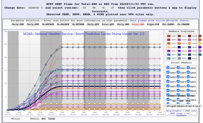 The plumes for RDU were all over the place. As late as 03z Saturday they had a range of 1-25” for RDU with a mean of 10”. So yes technically in the range but I could’ve thrown a dart 100 yards and been as close lol