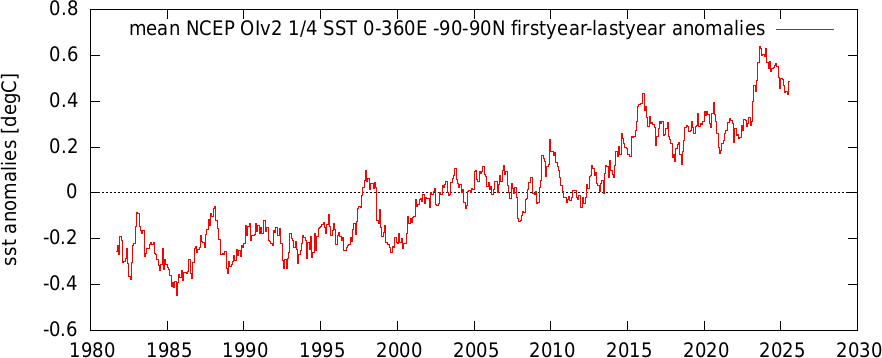 Satellite SST estimates show that the 23/24 nino cycle had a similar warming effect on global SST as the 2015/16 nino. Together these two nino's have triggered roughly 0.4C of global SST warming.