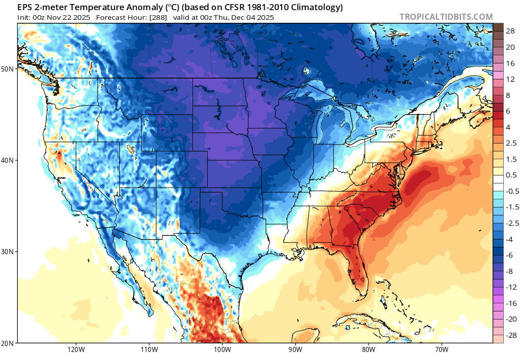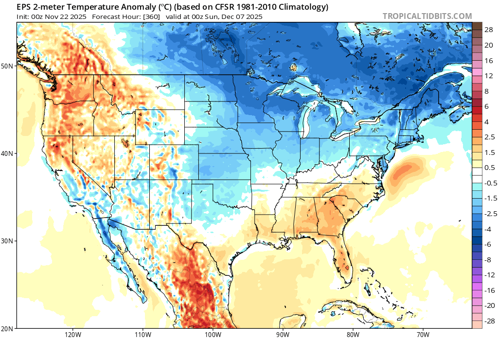 What is with these weird hours? 354hr? 306hr? We'll probably get a below average period after Thanksgiving into the first week of Dec as the EPO will be negative.. probably unlikely we see snow though. Then the pattern retrogrades and changes pretty quickly. -