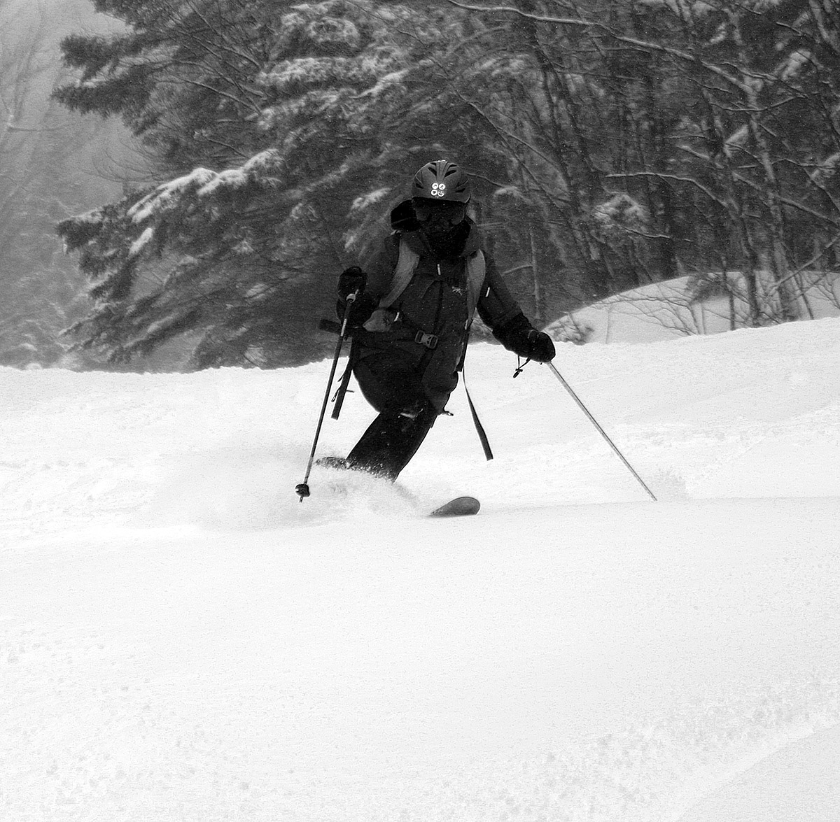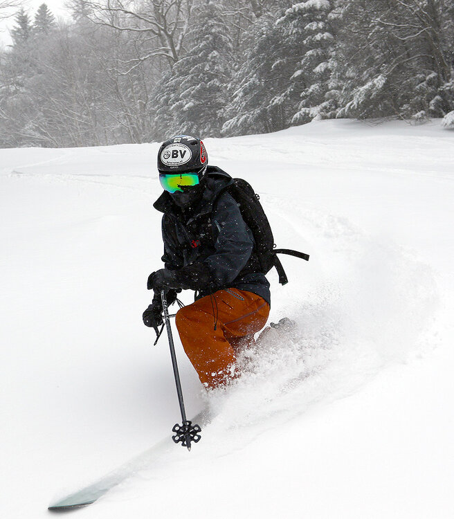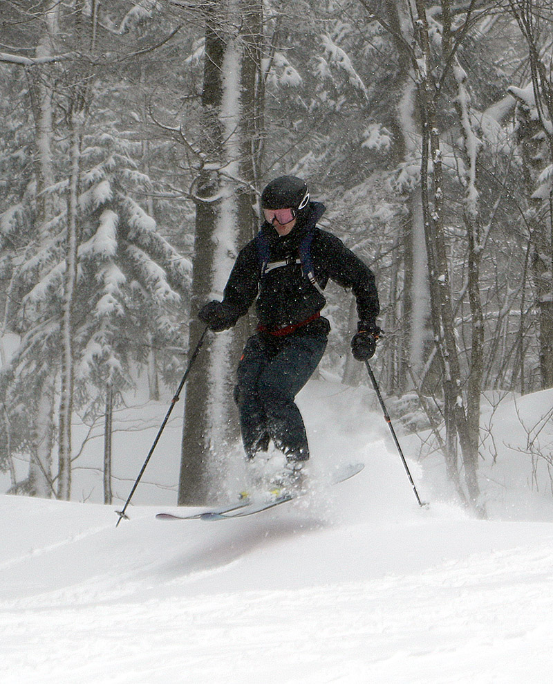 With the mountains picking up several inches of additional snow from our most recent clipper system, the family along with some friends headed up for some holiday season turns at Bolton Valley yesterday. Temperatures were cold – it was in the upper single digits F on the mountain for the start of the day, and it was only expected to get colder as the day went along. With that in mind, we decided to just head up for a quick tour in the morning via the Wilderness Uphill Route before the Wilderness Chair started loading. Up at the resort it was quite windy in exposed areas, and snow was still falling, so here was certainly a January feel. Based on my reconnaissance tour on Wednesday, I recommended we just stick to lower-angle terrain because even with the new snow, I didn’t think there were be enough liquid equivalent to support good turns on anything steeper than that. So the six of us toured up to ~2,700’ on Cougar and descended from there. Despite the additional snow for yesterday’s tour, I think that turns might have been a bit better on Wednesday. We were actually one of the first groups hitting that terrain for the day, so we had access to plenty of untracked snow, but the perceived slight drop in ski conditions might have been due to additional traffic on the earlier snow. Temperatures in the single digits F meant that the snow was somewhat slow as well, so that was kind of a knock against the skiing – you just didn’t glide that well, and that can be important on lower-angle terrain. After our tour, my younger son and his friends decided to hop on the Wilderness Chair for a lift-served run while the rest of us hit the base lodge, and they had fun, but the conditions weren’t good enough that it was worth hanging around to brave more of those cold temperatures and winds. Overall, it was great to get out for the tour, but even with the couple rounds of snow we’ve seen in the past few days, there’s just hasn’t been enough liquid equivalent set down yet to be anywhere near a real resurfacing. That, and the relatively cold temperatures mean that the skiing is there, but it’s just not back to anything great yet. The snowpack is quite robust though, so as soon as we get that resurfacing, the local resorts should be set up for some excellent skiing again.