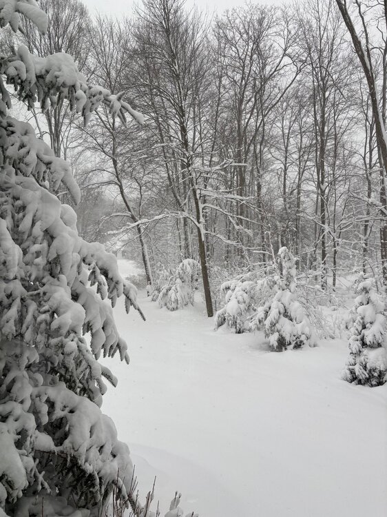 Heavy snow most of the morning. You can see it starting to wind down west to east on radar. Pines are getting buried.