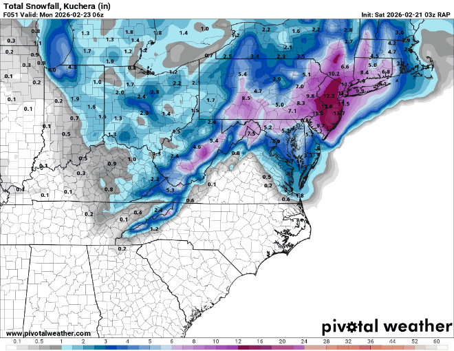 Hot off the presses… LWX pushes watches ever so slightly SW to include bay adjacent counties west of the bay and SE Howard. MOCO and DC left out still. URGENT - WINTER WEATHER MESSAGE National Weather Service Baltimore MD/Washington DC 146 AM EST Sat Feb 21 2026 MDZ014-017-018-506-211500- /O.EXA.KLWX.WS.A.0003.260222T2000Z-260223T1500Z/ Anne Arundel-St. Marys-Calvert-Central and Southeast Howard- 146 AM EST Sat Feb 21 2026 ...WINTER STORM WATCH IN EFFECT FROM SUNDAY AFTERNOON THROUGH MONDAY MORNING... * WHAT...Heavy snow possible. Total snow accumulations of 5 inches or more are possible. Winds could gust as high as 35 mph. * WHERE...Anne Arundel, Central and Southeast Howard, Calvert, and St. Marys Counties. * WHEN...From Sunday afternoon through Monday morning. * IMPACTS...Travel could be very difficult, especially Sunday night into Monday morning. The hazardous conditions could impact the Monday morning commute. PRECAUTIONARY/PREPAREDNESS ACTIONS... Monitor the latest forecasts for updates on this situation. && $$