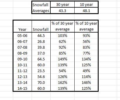 @CPcantmeasuresnowI'm looking around a bit now, it might have been part of the NWS NOWdata under Montgomery but its not there now. I remember when I came across it I was surprised and again took it with a grain of salt. I must have found it a few years ago again because I just came across this little spreadsheet I did 10 years ago that shows the 30 year average (KMGJ)which was higher than it is now, 43.3" then and 42.2" now. The 10 year averages were my own measurments.
