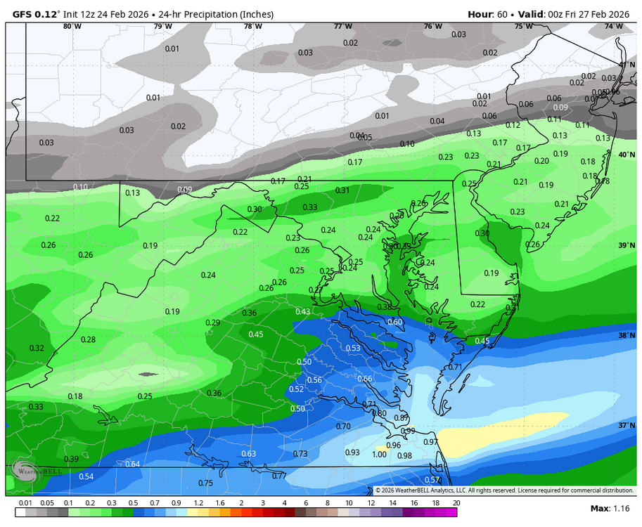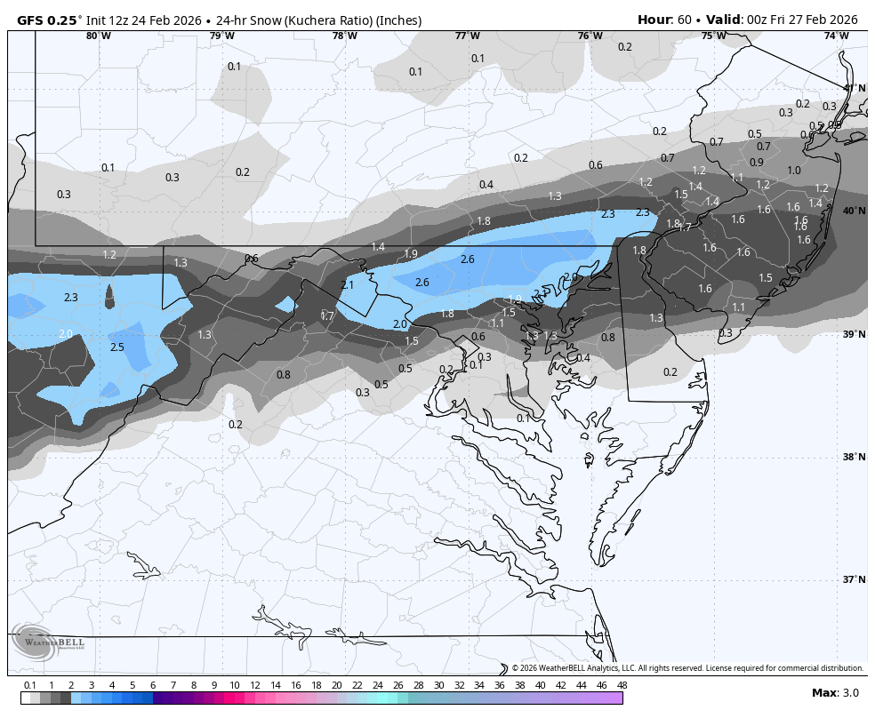 Still can't get any consistency on guidance on Thursday PM, all over the place from a complete miss to a graze to 3-6"