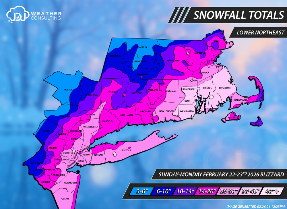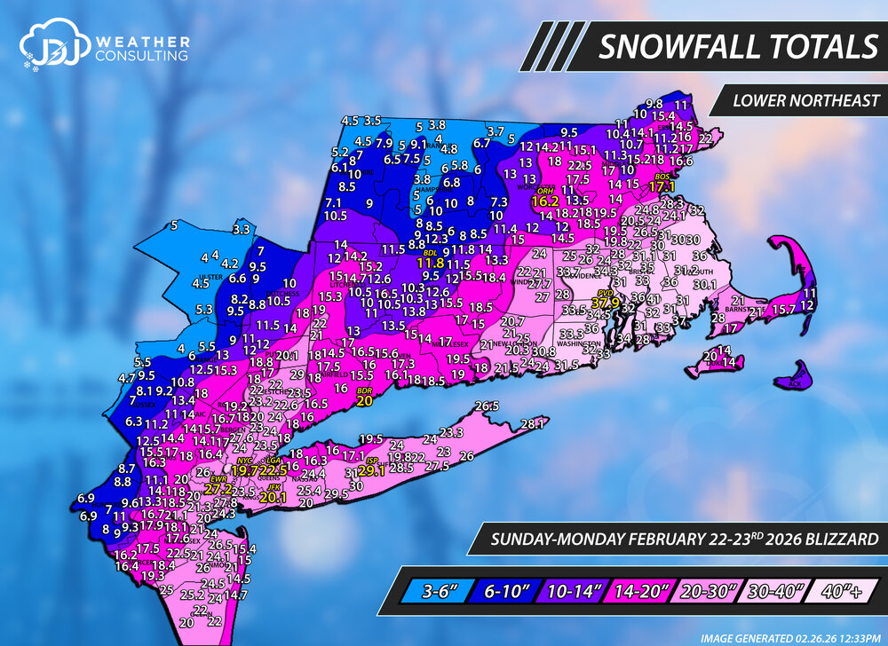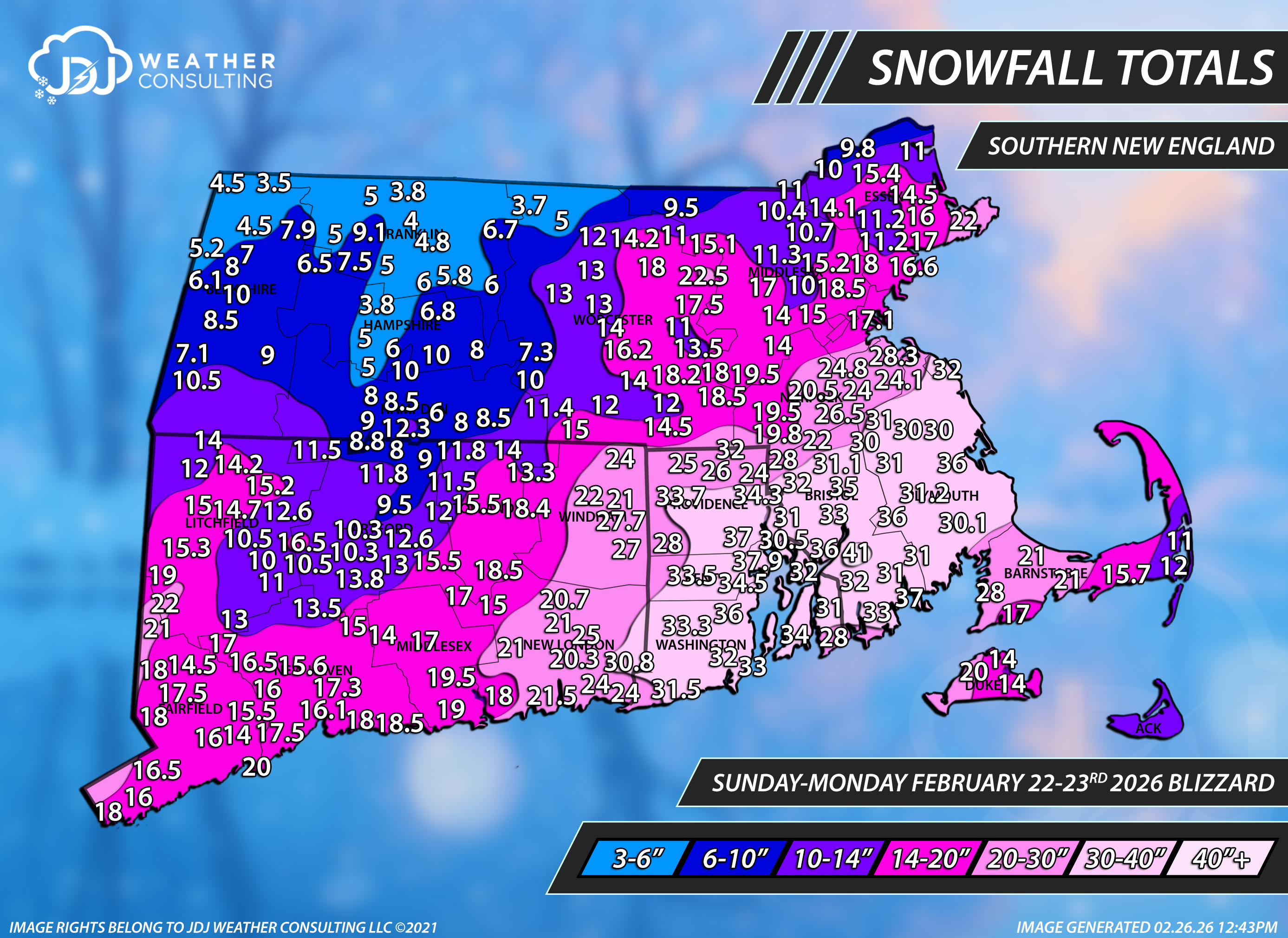 10. Updated snowfall analysis maps for the Blizzard of 2026. Everything is updated on the site, a full page with surface maps/H5 and radar will come soon. CT and Tri-State only maps are up as well. https://www.jdjweatherconsulting.com/winter-25-26 Lower Northeast Contours Only Southern New England