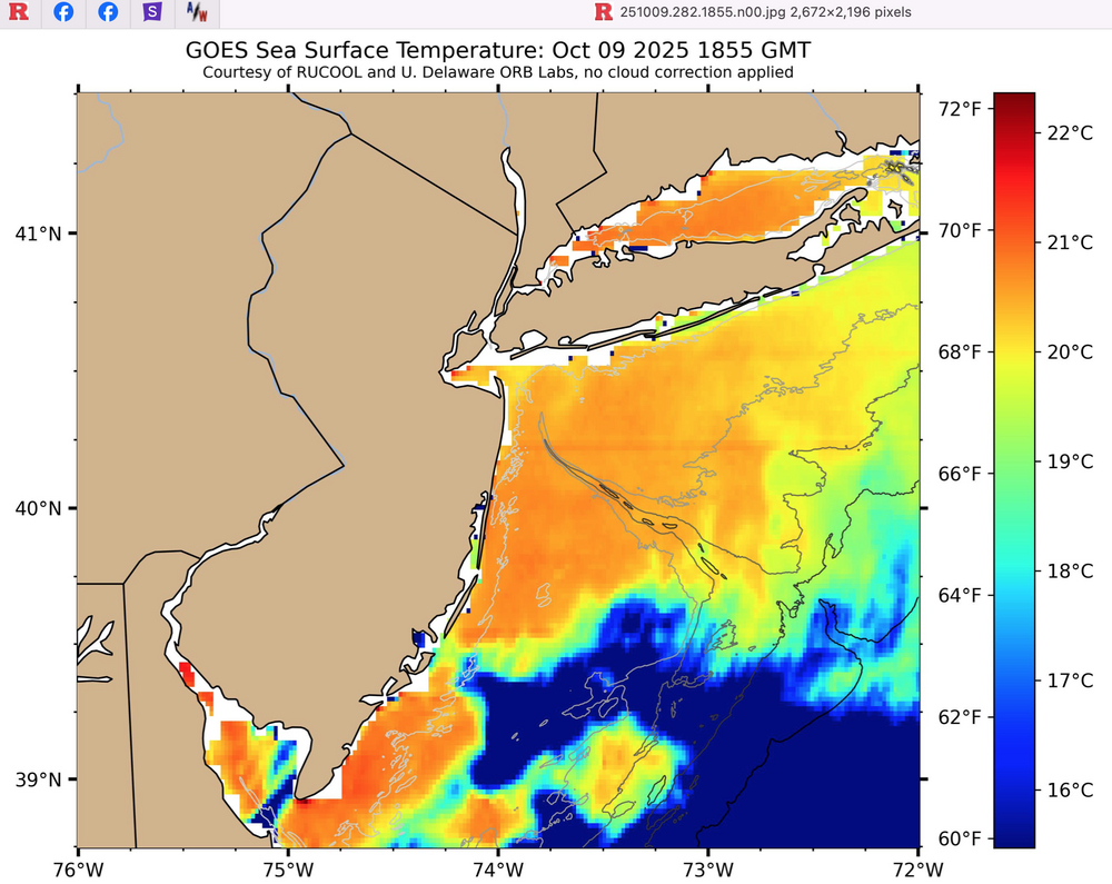 Following up on your post: I took a look at SST anomaly at 12z/9 this morning. VERY warm departures and water temps right now SDHook, Entrance to NY Harbor around 68. I think we're talking fairly steep lapse rates in the BL Sunday-Monday permitting pretty decent downward transfer of gusts. Two graphics attached. Surface temps should be in the range of 57-63F on the NJ coast and probably LI north shore as well 18z Sun-18z Mon. That is cooler than the SST. Using 12z EC OP model sounding - I see what appears to me a fairly unstable lowest 50 MB. That is only the 12z/9 EC OP. (did not attach the sounding-its predictive and still 72-96 hours distant). We'll see how intense the wind fields evolve etc but needs to be monitored for watch/warn process and resultant water and power outage situation on the coasts. No coastal hugger, much less impact.