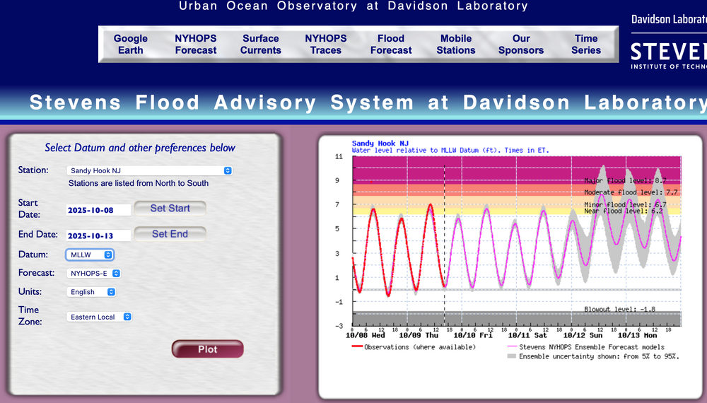 Still MUCH time for adjustments. The ensembles are all damped out out with variable solutions so believing an op cycle straightforward is not recommended. The EC OP is in the high end impact group with almost an eye circulation off Cape May come late Monday but for now, in the back of my mind but not barking it as the more likely solution. Someone mentioned the deformation zone as a potential area of concern for surprise high amounts. I am in agreement. Therefore am thinking along and north of the eventual 8H-7H circulation will be large, which eventually favors much of our area, especially NNJ-LI and not a big trim in s CT. Evolution uncertainty. Not upgrading to spot 6" amount in NNJ (Ocean County northwestward) but monitoring circulation development and staying as initially posted last several days and in this thread last evening. LONG ways away. Added 12z/9 NYHOPS tidal expectation at Sandy Hook as an example. The outlier is MAJOR. the more likely scenario at this 3-4 day juncture is MDT for at least one cycle at Sandy Hook, as exampled. Recent water level bias has been a couple inches one the low side of reality, from what I can tell. Checking back later this evening or tomorrow morning.