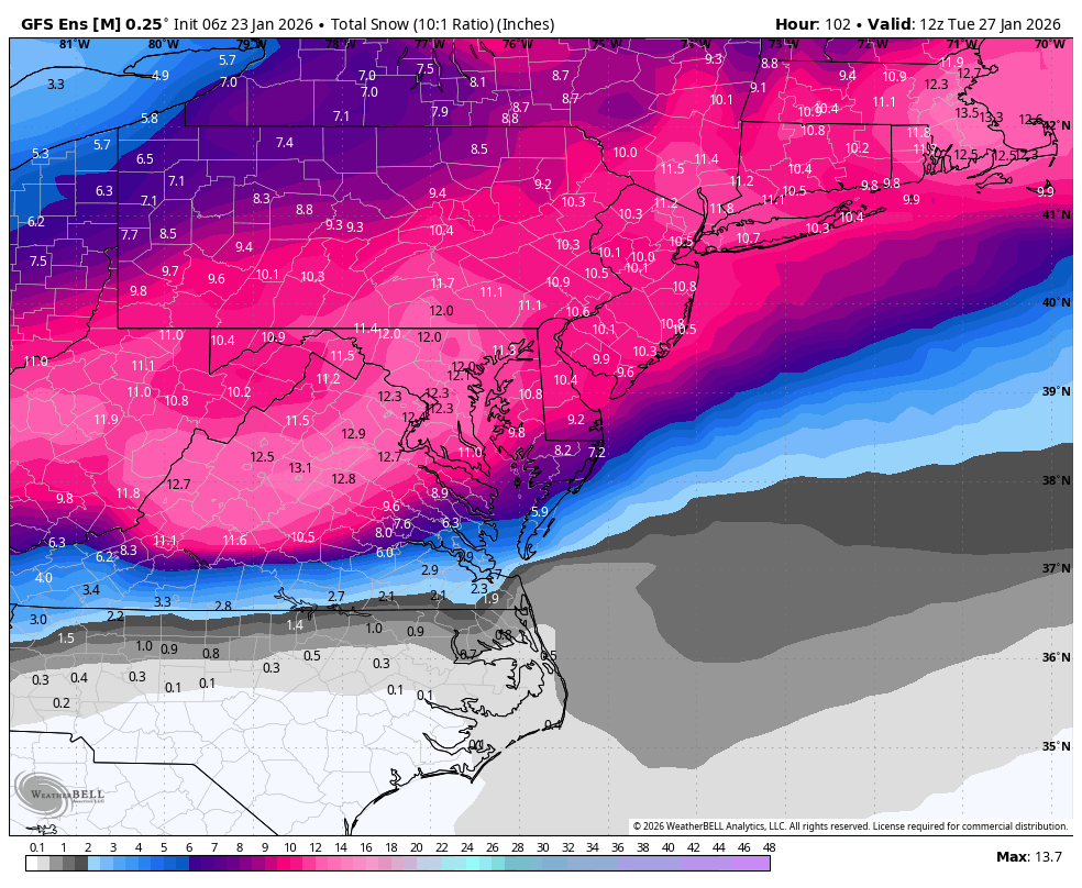 I think there is almost a diving line in the Lehigh Valley between who sees 8+ and who doesn’t when all the trending and everything is said and done. My expectations for Allentown/Bethlehem etc is these areas top out around 7/8in and then get dosed with slop