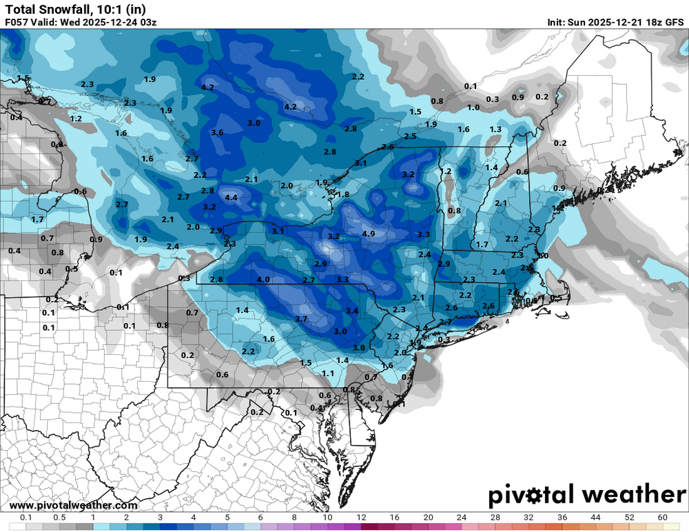 You don’t even really need a map for the forecast: Coating to an inch: S/E I-95 1-3”: N/W of I-95 to I-90 2-4” I-90 N to NH/VT/ME Mountains 3-5”+ NNE mountains Probably won’t be model agreement until tomorrow, as again northern stream energy is windshield wipered on the models every time a reindeer farts in the wind. It might snow near Christmas. Expect disappointment and be pleasantly surprised if it does. Happy holidays! -