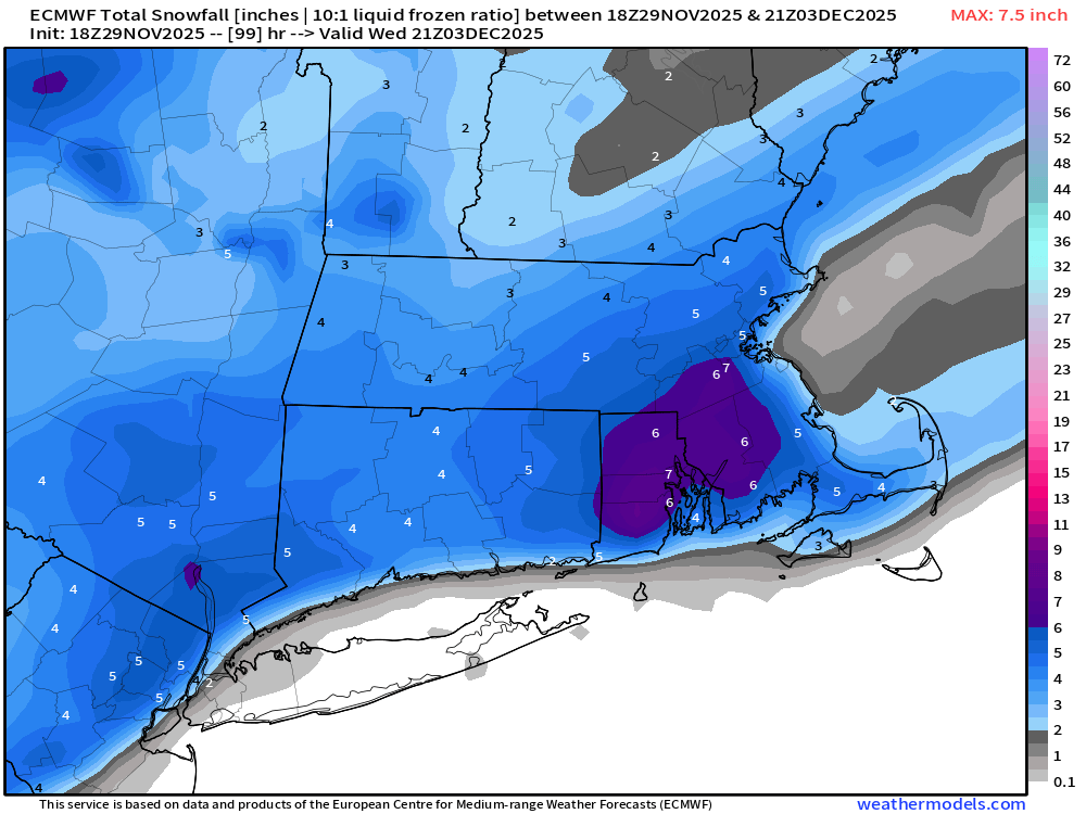 A 2 to 1 blend in favor of Euro would actually be one of the few ways we get widespread 4-8” amounts across a lot of SNE into CNE. Maybe we’ll actually catch a knife’s edge in our favor this time. Would be nice juju to start the season after the last several years. -