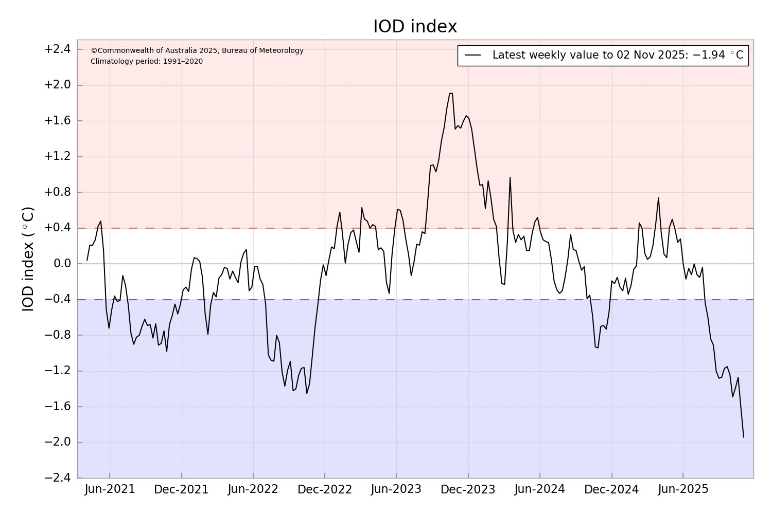 The Indian Ocean Dipole (IOD) has reached a new record weekly negative value at -1.94ºC. A negative dipole reduces convection across the west Indian Ocean and enhances it across the east. This can favour more blocked weather patterns. Sent from my SM-G998U using Tapatalk