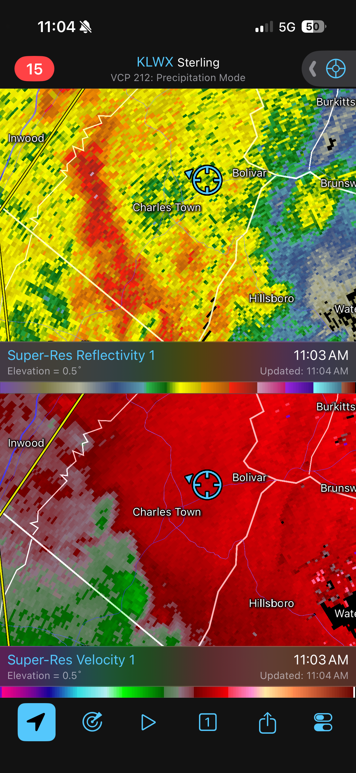 One thing I'm watching is the cluster of storms moving north near Southern Pines and approaching the front moving east. That pinch point will have a lot of shear and we could get some rotating storms within the next 30-60 minutes.