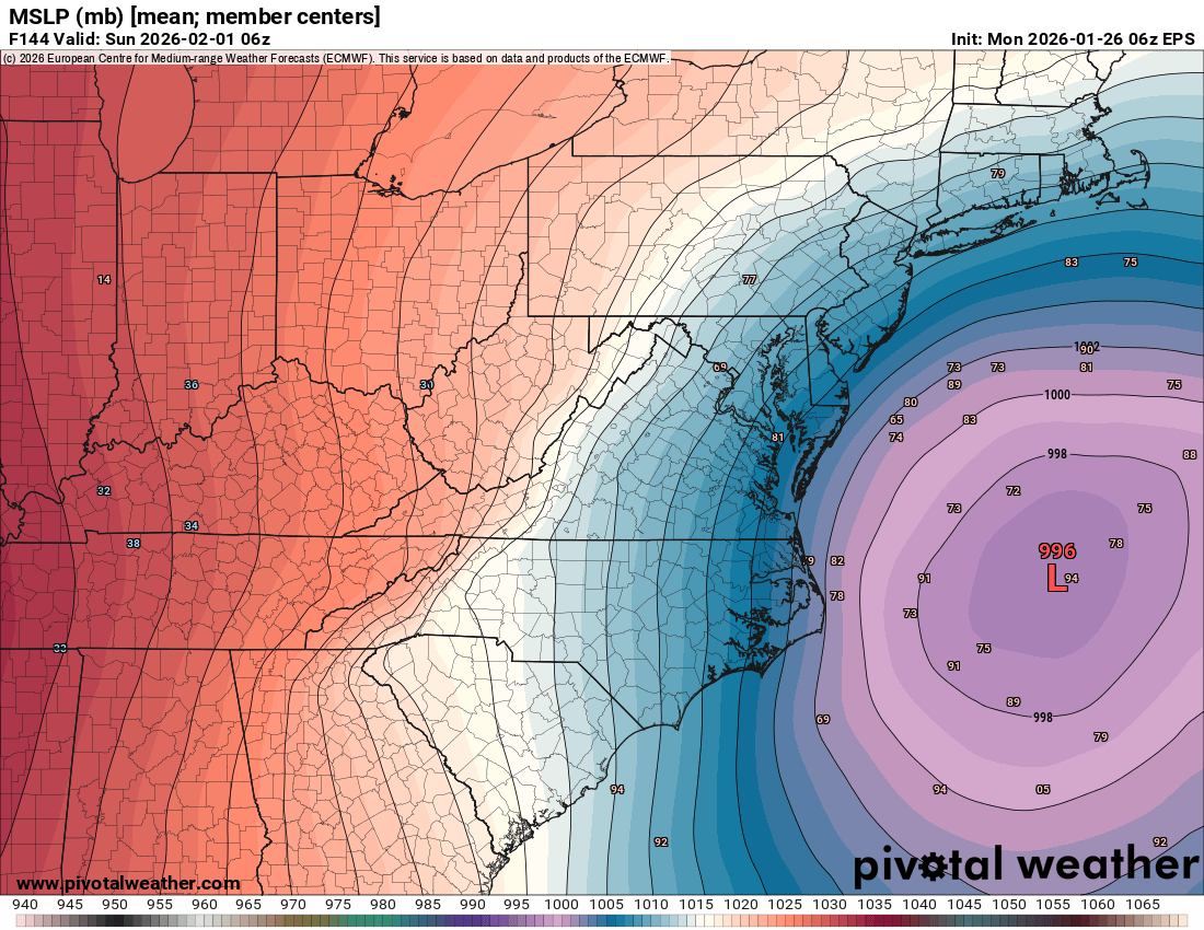 Made this gif of the EPS mslp 06, 12, 18z. valid sunday 06z. good bounce back at 18z today. you can see the spread was a bit greater at 06z with some way inland outliers that have been cleaned up.