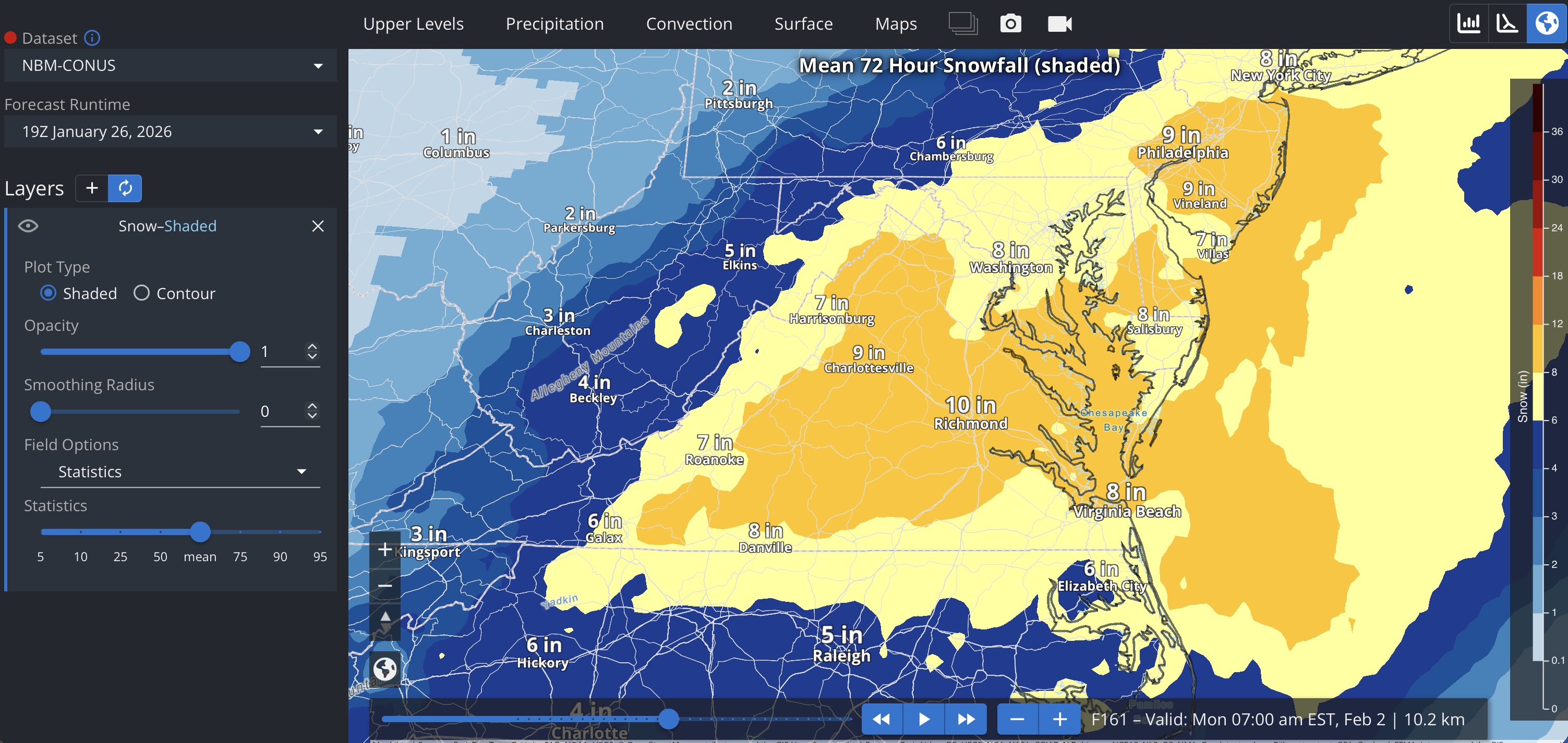Everyone is obviously focused on the recent ECMWF 18z runs, but I'm going to throw in the 19Z NBM output anyway -