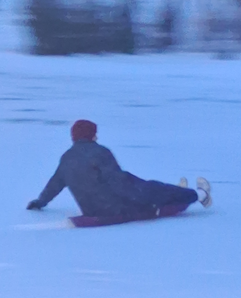 Tried the longer sled today and we got a couple of decent rides! The rope tow wasn't working or we would have done more. Glad we got out and enjoyed the snow that way. Need some spiked gloves for better steering. 15°F currently. -