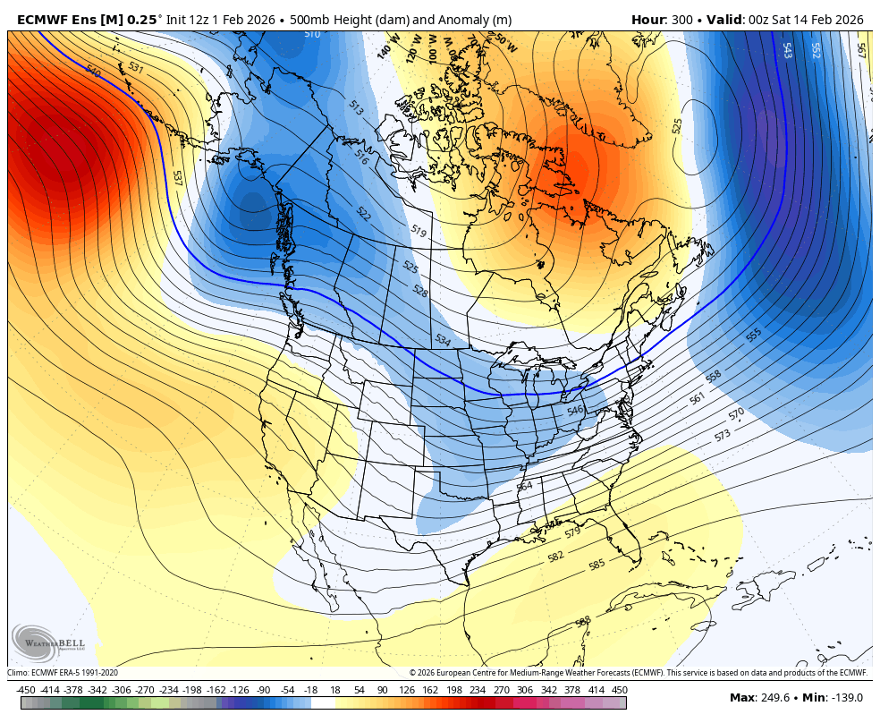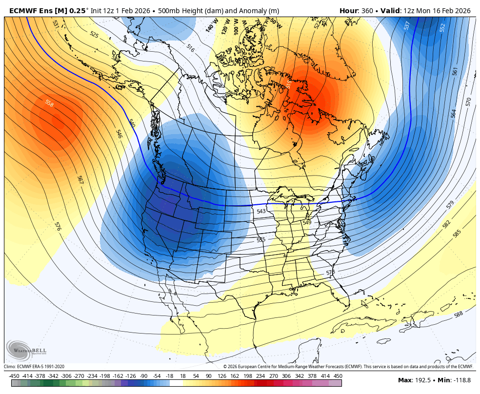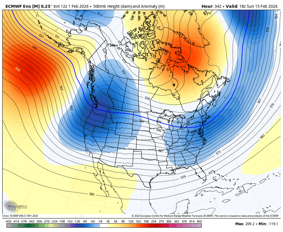 The 12z EPS continues with a workable look through the 15th & then week ridging shows at the end of the run. There is no punting until March on the EPS… -