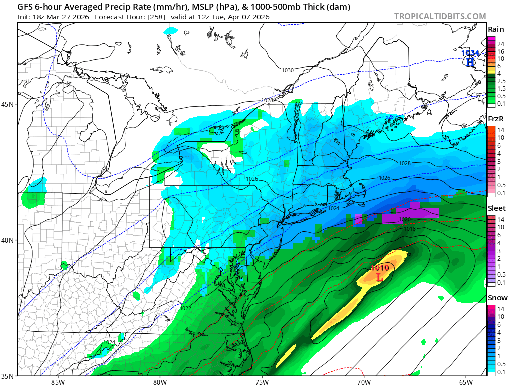 7. Out here in a steady rain at a baseball game. Guidance missed this, had it farther south.