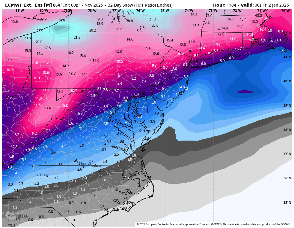 Weeklies agree with that . Maybe just maybe we will have a nice winter.