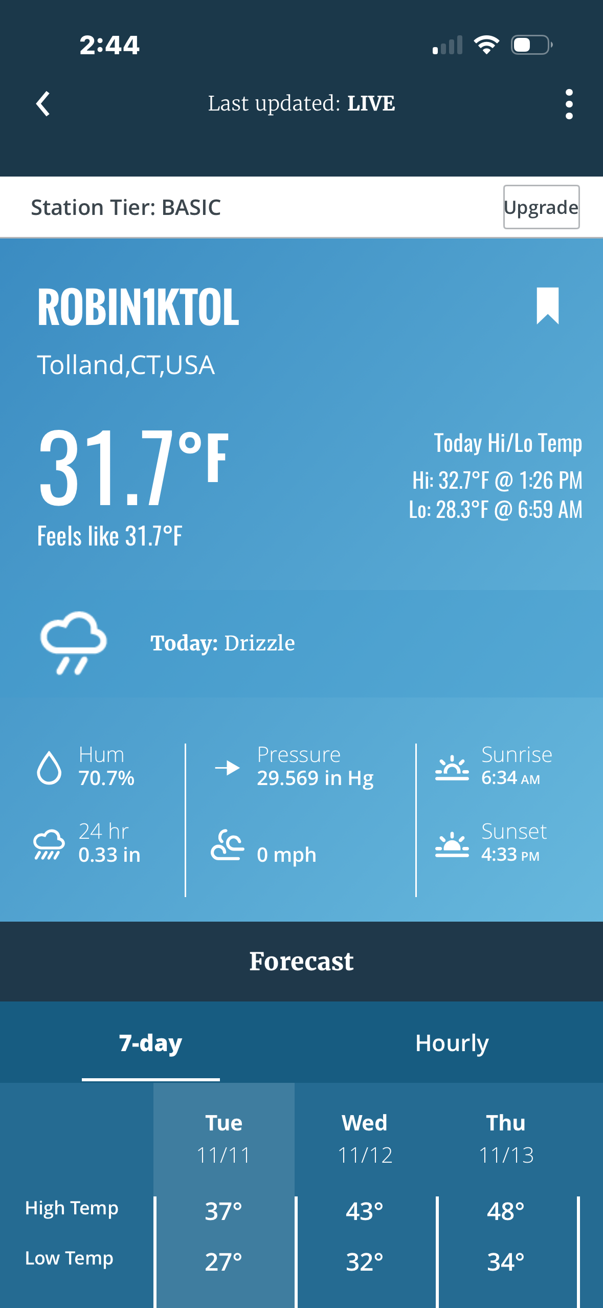 First sub 32 degree high of the season for me here in Burlington, CT....1,240' -