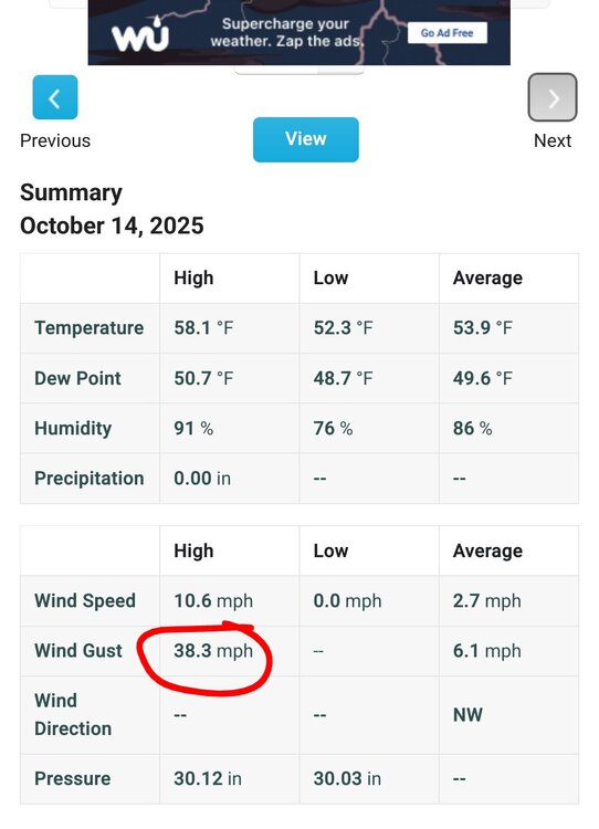 Who else had wind? Finally getting good gusts with this new station. I do think my old one was too low with wind speed. -