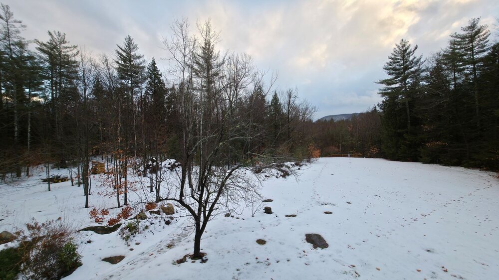 Front yard still has snow, woods, out back were decimated though.
