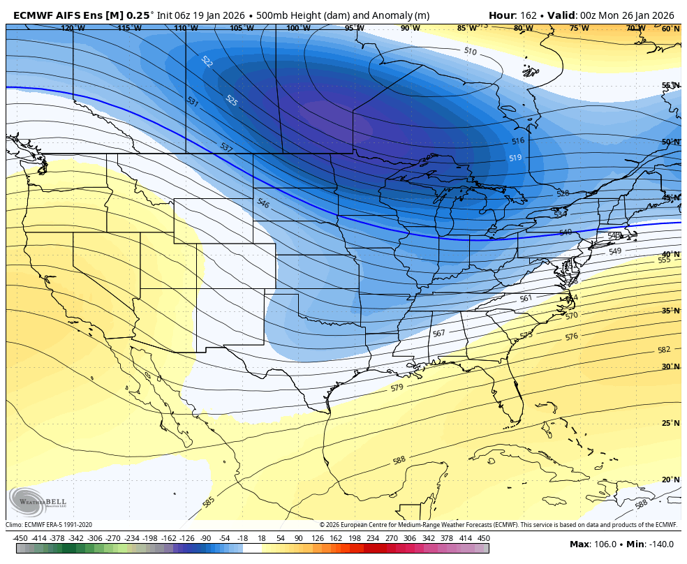 AI guidance im told have good verification scores at this range. This is right now at day 6 considered their wheelhouse. I am still concerned about suppression in this pattern but having some reliable guidance continue to move North makes me feel a little bit better. I will say im my experience, 90% or more of the time, these high pressures or extreme cold tend to be overdone and things in general come North as we approach game time. This may be the 1 out of the 10 times though...so Im playing it cautious wrt my expectations. -