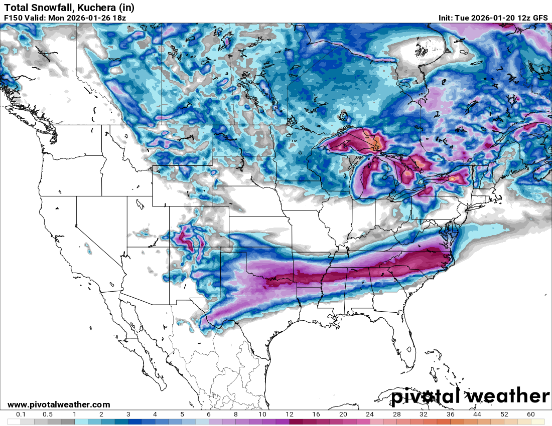 You’re not wrong, but I have a hunch the cold air is overdone. The better gfs runs show ~1040 high instead of near 1050. Chicken egg thing…is that causing the Baja low to spin itself out or is the low shearing out allowing the hp to overwhelm. I’ll let you know next Monday.