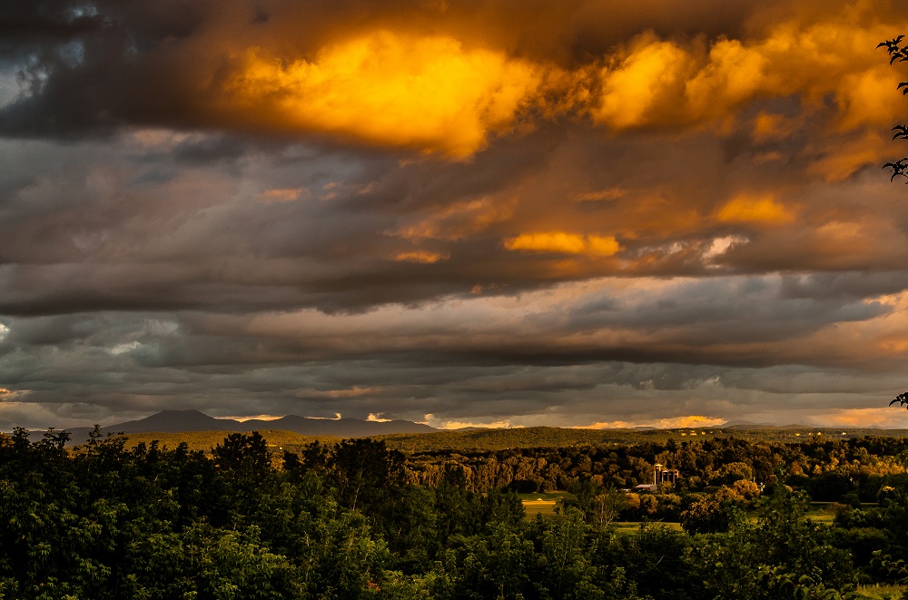 This was taken overlooking the Champlain Valley in northern VT as an upper level disturbance passed overhead. Broken clouds developed in the less stable atmosphere away from the lake. With clear skies over the lake the sun was able to cast some great light onto them as it set.