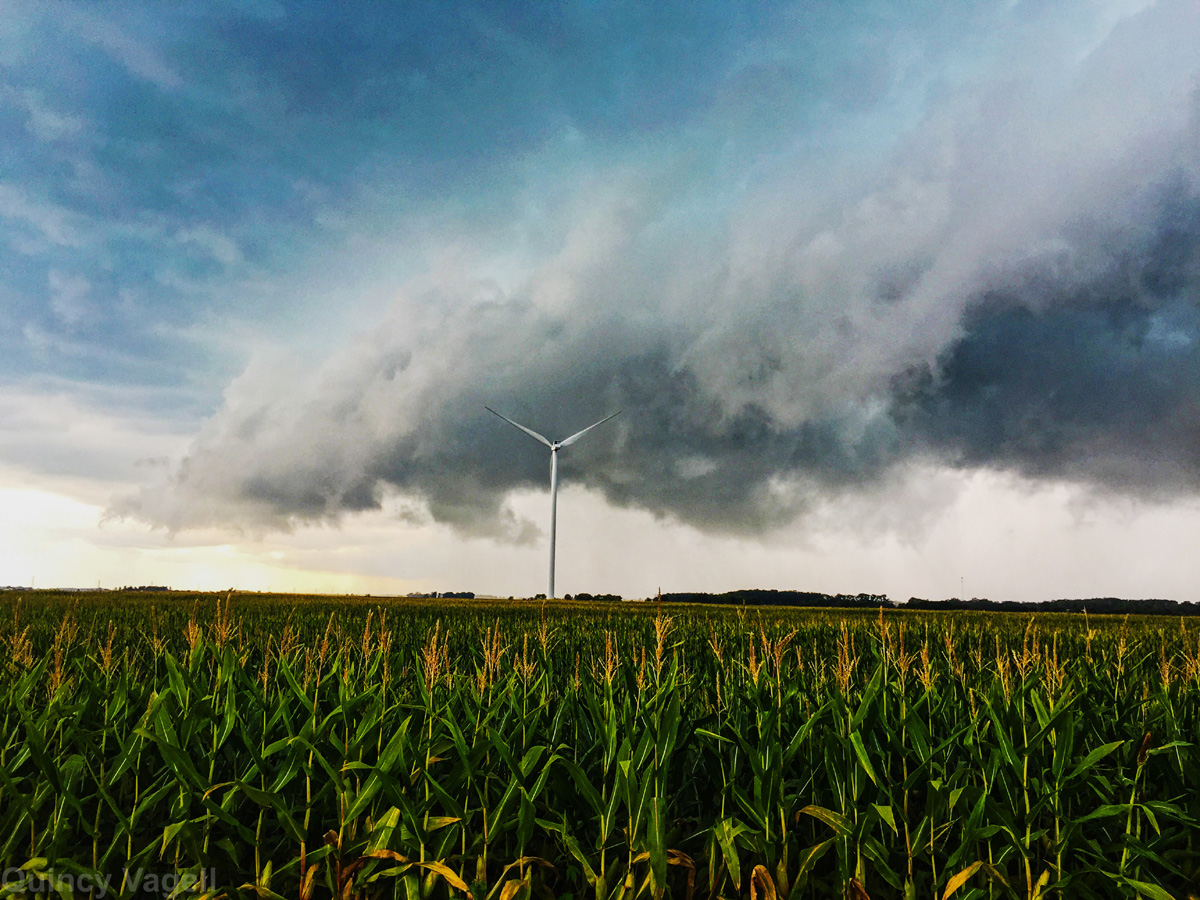 A thunderstorm approaches farmland of corn and wind turbines just south of Payne, OH. August 23rd, 2015.