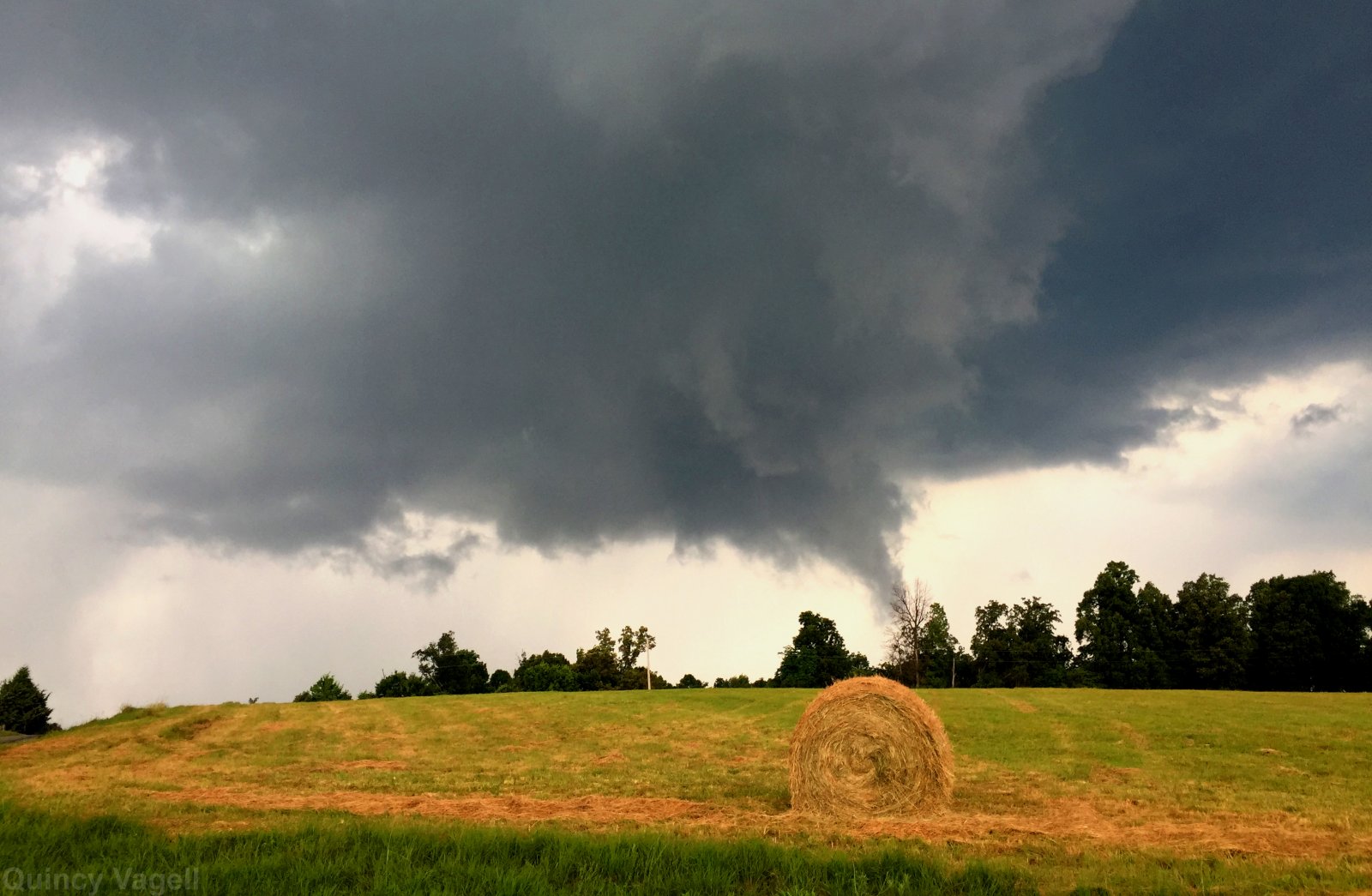 A low hanging cloud resembles a funnel cloud near Midway, Illinois. July 3rd, 2016.