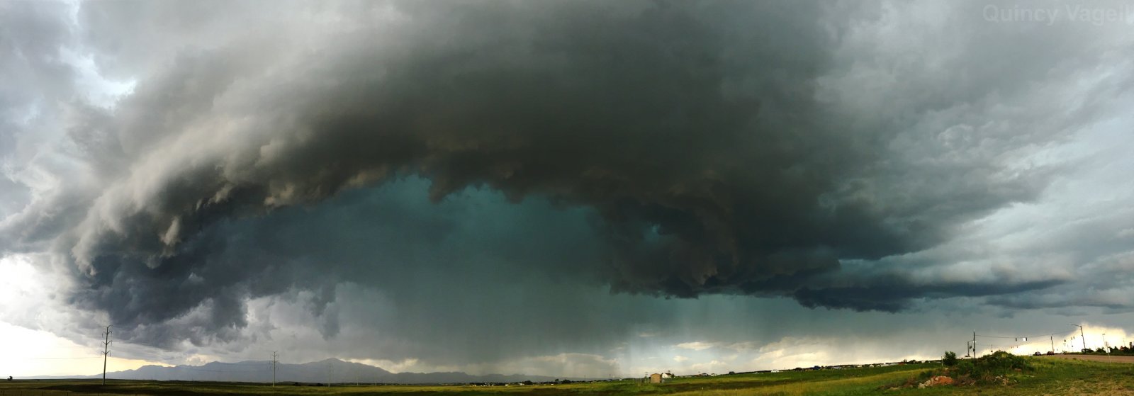 A tornado-warned thunderstorm near Colorado Springs, Colorado takes on a shelf-like appearance. July 8th, 2016.