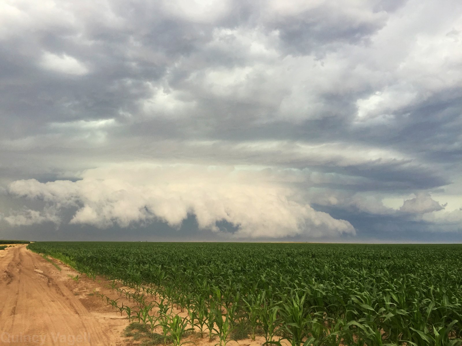 A tornado-warned thunderstorm displays a low cloud base near Johnson City, Kansas. July 15th, 2016.