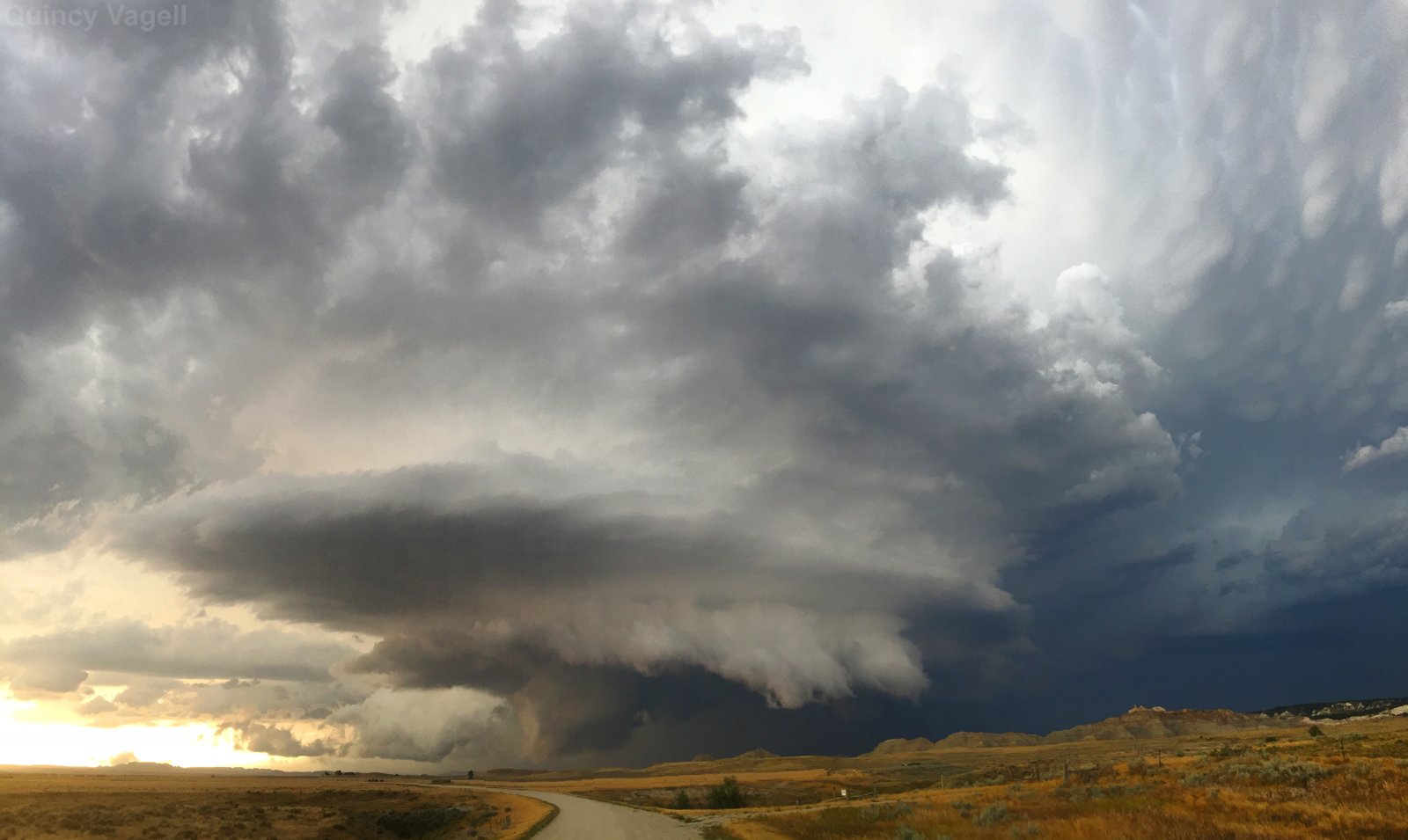An intense supercell thunderstorm with a history of producing hail larger than softballs in southeastern Montana begins to move into northwestern South Dakota. August 9th, 2016.