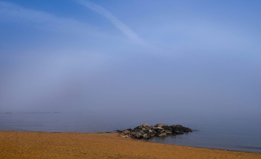 Thick fog over the Chesapeake Bay this afternoon. Car temp (I know not most reliable) was reading low-mid 40s and when I got to Ritchie Highway, the temp jumped to low-mid 50s. 10 degree warmup away from the water.